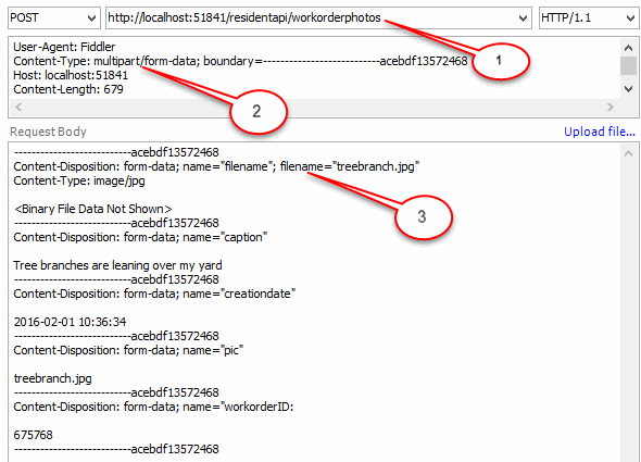 - The content type must be set as multipart/form-data. In the request header, "Content-Type: multipart/form-data" must be present.